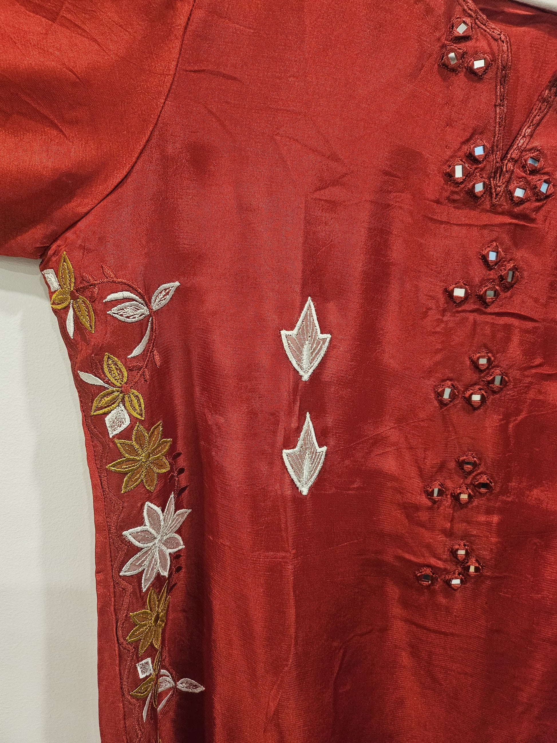 Red 3pc Pure Silk Dress with Shirt, Trouser and Scarf